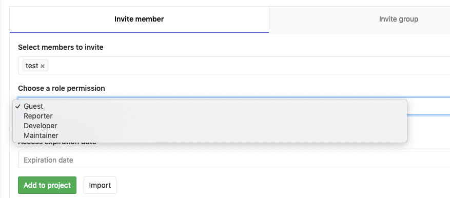 注意:在GitLab 11.0中,Master已重命名为Maintainer。