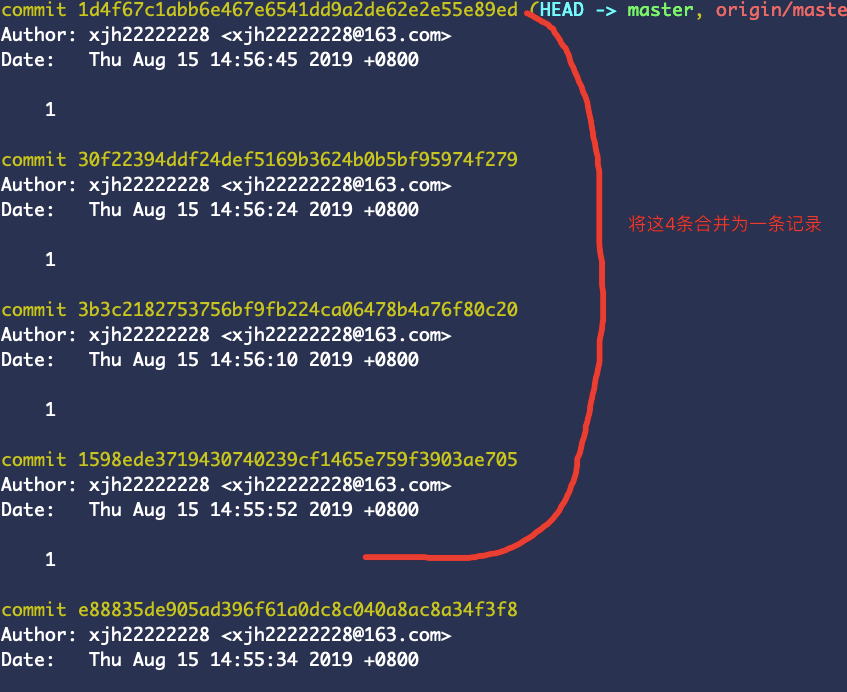在项目进行多次迭代优化时会有多次commit记录, 而这几次记录完全可以当做一次commit, 这就会导致分支历史记录很混乱,如: