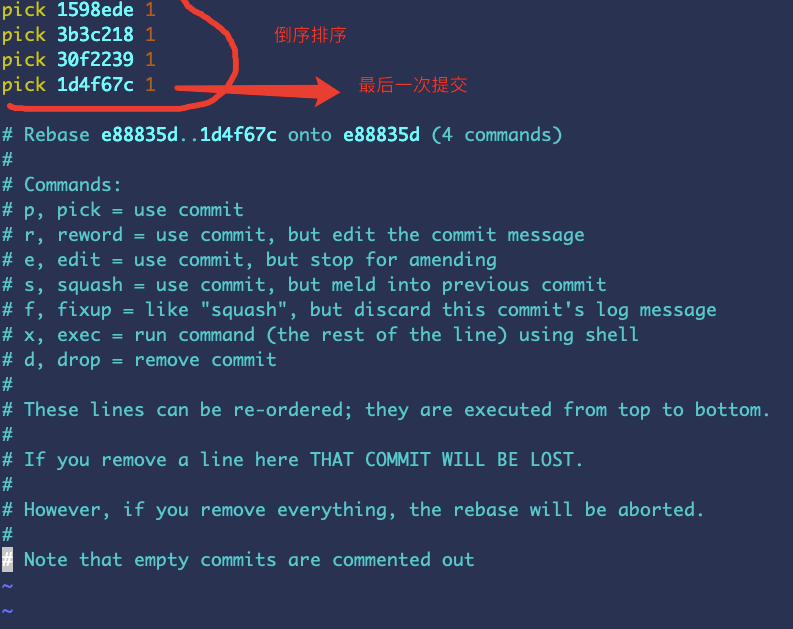 2、此时会进入 rebase 交互式终端