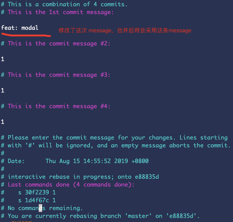 为了便于大家理解,我将commit message修改了下