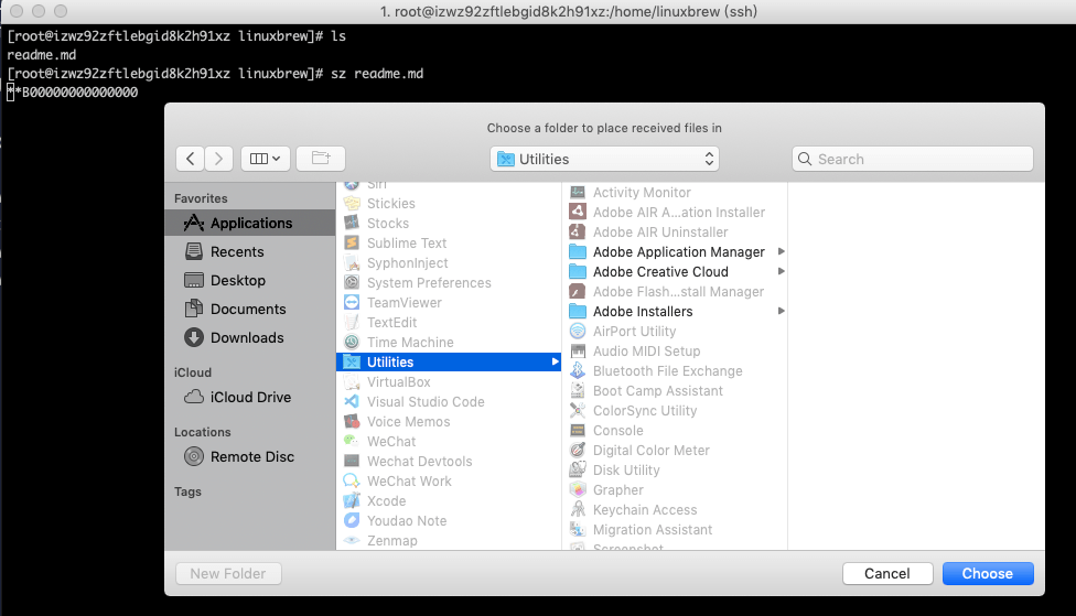 sudo wget https://raw.githubusercontent.com/xjh22222228/iterm2-zmodem/master/iterm2-send-zmodem.sh